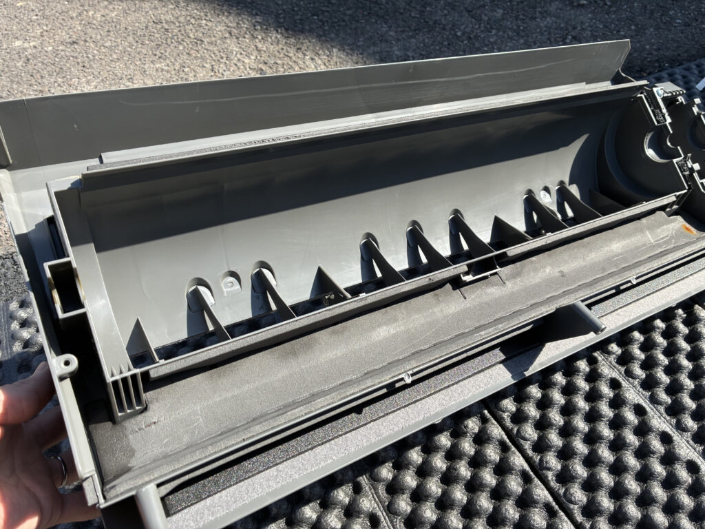 6年使用されて初めてのクリーニングでした。リビングに設置されたエアコンでしたので、送風ファンにカビがびっしり。分解途中でもカビの塊が落ちてきていましたので、周辺の養生はもちろん、パーツを運ぶ際には汚れ等が落ちないように心がけました。特に送風ファンを洗浄する際、水洗い・専用洗剤・ハイター付け置き・ブラシで一枚一枚羽を磨く工程を行うことで、ピカピカに仕上がりました。